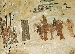 En 108, Wudi envoie le général Zhao Ponu (趙破奴) en campagne à Xiyu (dans l'actuel Xinjiang). Ce dernier force les royaumes de Loulan et de Cheshi (ou de Gushi) à la soumission. En 105, Wudi donne en mariage une princesse de la lignée impériale éloignée à Kunmo (昆莫), le roi de Wusun. Elle se marie par la suite avec son petit-fils et successeur, Qinqu (芩娶), ce qui crée une alliance forte et stable entre Han et Wusun. Les divers royaumes de Xiyu souhaitent pour la plupart renforcer leurs relations avec les Han. Une ignoble guerre entre les Han et le royaume voisin de Dayuan débute toutefois en 104. Dayuan refuse de livrer à l'empereur Wudi ses meilleurs chevaux et les ambassadeurs Han sont même exécutés après avoir insulté le roi de Bayuan après son refus. Wudi envoie Li Guangli (李廣利), le frère de la concubine favorite Consort Li, en tant que général pour diriger la guerre contre Dayuan. En 103, l'armée de Li composée de 26 000 hommes (20 000 Chinois et 6 000 cavaliers des steppes)[4], sans le ravitaillement nécessaire, subit une humiliante défaite contre Dayuan. Mais en 102, la nouvelle armée de Li, composée de 60 000 hommes[5] , parvient à mener à son terme un siège dévastateur de la capitale de Dayuan, en coupant l'alimentation en eau de la ville. Dayaun est ainsi forcé de céder 3 000 cheveux parmi les meilleurs[5]. Cette victoire Han a un effet d'intimidation sur les autres royaumes Xiyu.