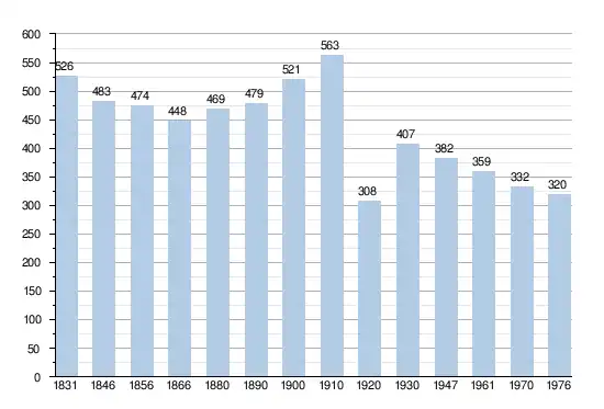 - Sources : INS, Rem. : 1831 jusqu'en 1970 = recensements, 1976 = nombre d'habitants au 31 décembre[2].