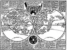 - 1401-1406 : traduction en latin de la géographie de Ptolémée par Jacopo d'Angelo (imprimée à Rome en 1478)[25]. L’ouvrage démontre la rotondité de la terre. Par un calcul erroné, il place le continent asiatique à la longitude du Mexique. Il place au sud de l’Équateur l’énorme masse d’un continent qui rejoindrait l’Afrique et l’Asie.