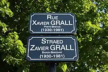 Daoulas (label "Village en poésie" décerné par le Printemps des Poètes) a donné en 2013 le nom de Xavier Grall à une rue de l'écoquartier du Pouligou.