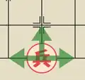 Comme les pions des échecs occidentaux, ils sont en première ligne et se déplacent droit devant eux, d’une case à la fois; cependant ils capturent droit devant. Mais une fois qu’ils ont franchi la rivière, ils peuvent aussi se déplacer (et capturer) d’une case horizontalement. Ils ne peuvent donc pas occuper tout le terrain chez eux où ils n’ont pas vocation à rester, mais peuvent aller partout dans le camp ennemi, même si ce sont des pièces lentes.