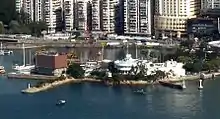Le Yacht Club royal de Hong Kong sur l'ancienne île Kellett (en). Vu depuis l'ouest. | |