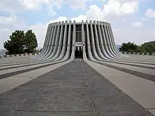 Le mémorial, haut de 18 mètres est en forme de souche d'arbre coupée, symbolisant une vie écourtée. À l'intérieur, une flamme éternelle y brûle. Il est entouré de 51 colonnes de béton, une pour chacun des cinquante États des États-Unis et une pour Washington, la capitale de cette nation. Les emblèmes des États et du district sont affichés sur chacune des colonnes et les colonnes sont séparées par des panneaux de verre.