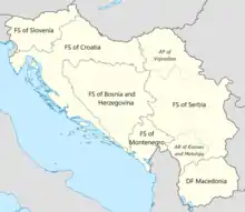 La Yougoslavie fédérale démocratique était composée de 6 républiques et de 2 régions autonomes :