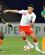 Le 3 septembre, après des discussions avec des fonctionnaires de la Fédération royale marocaine de football à Montpellier, il choisit d'intégrer l'équipe du Maroc plutôt que l'équipe de France[105]. Le 17 novembre 2010, il fait ses débuts avec le Maroc en amical face à l'Irlande du Nord sous le sélectionneur Eric Gerets[106]. Lors de ce match, Nacer Chadli (qui choisira peu après la Belgique) fait également ses débuts. En mars et juin 2011, il est également sélectionné pour la double confrontation face à l'Algérie à Annaba (défaite, 1-0) et à Marrakech (victoire, 4-0).