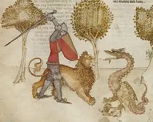 - Yvain ou le Chevalier au lion (v. 1176) - il en est le personnage principal.