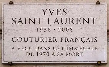 Une partie de la pelouse de l'avenue de Breteuil (7e-15e arrondissements de Paris) porte le nom d'Yves Saint-Laurent, qui vivait non loin.