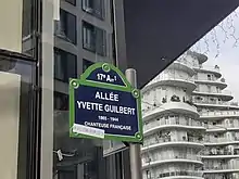 Une allée Yvette Guilbert a été inaugurée en février 2018 dans le 17e arrondissement de Paris, à proximité de l'allée Barbara, artiste souvent comparée à Yvette Guilbert[24].