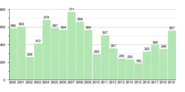 | Ensemble des logements | 424 | 419 | 420 | 433 | 463 | 445 | 443 | 473 | 484 | 472 | 481 | 485 | 495 | 481 | 543 | 535 |