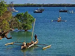 Une des caractéristiques majeures de la culture swahilie est l'usage de bateaux « cousus », particulièrement souples et permettant donc de naviguer en relative sécurité par-dessus les récifs immergés à marée haute, et de s'échouer en toute sécurité sur les plages : on les appelle « mtepe », et ils seraient originaires de la région des Maldives, apportés sur les côtes africaines à une date inconnue par la migration de l'énigmatique peuple Wadiba, et rapidement copiés par tous les peuples de la côte est-africaine[7]. Ces bateaux cousus sont déjà cités dans Le Périple de la mer Érythrée[7], et ne connaîtront pas de réel concurrent avant l'arrivée des boutres, plus propices à la navigation longue. Leur capacité à s'échouer sans risque sur les plages de sable a considérablement retardé la construction de ports dans la région, utiles seulement aux navires rigides étrangers, ce qui a longtemps entravé le commerce direct entre le zanguebar et les grandes puissances lointaines[7].