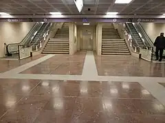 Établie en souterrain, Zara est une station de correspondance qui comprend deux sous-stations[1] pour deux lignes se croisant à angle droit à des profondeurs différentes[2] :