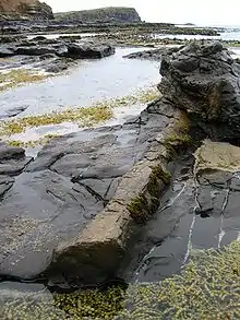 À Curio Bay, on peut voir une forêt pétrifiée d'arbres de la famille des Kauri et des pins de Norfolk, qui poussaient sur Zealandia il y a environ 180 millions d'années lors de la période Jurassique, avant que la Zealandia se sépare du Gondwana[17]. Ils ont été enterrés par les coulées de boue volcanique et peu à peu remplacés par de la silice pour produire les fossiles aujourd'hui exposés sur la plage.