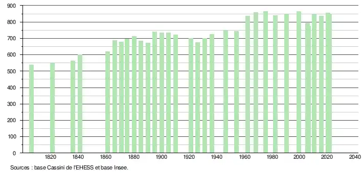 - Population municipale légale en vigueur au 1er janvier 2024, millésimée 2021, définie dans les limites territoriales en vigueur au 1er janvier 2023, date de référence statistique : 1er janvier 2021.