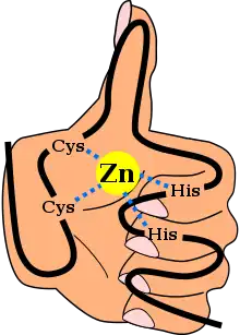 Le zinc joue des rôles clés comme composant structurel, enzymatique ou de signalisation dans des processus biologiques. À l'intérieur des protéines, il peut se lier par différentes coordinences à des atomes d'oxygène, d'azote et de soufre. Dans l'ensemble des protéines (protéome) des eucaryotes, les protéines à zinc représenteraient près de 9 % du total, et plus de 10 % chez les humains[2].