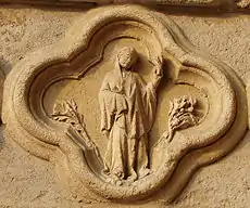 ![]() Partie extérieure (gauche) du soubassement gauche du portail Saint-Firmin |