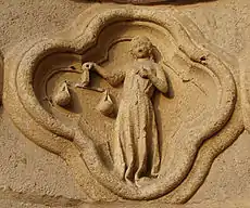 - Sous le signe du Verseau (janvier-février), on peut se faire servir à table... Le personnage représenté dans ce quadrilobe est un Janus bicéphale (le mot janvier provient du mot Janus). Il possède deux visages. Celui de gauche est celui d'un vieillard et représente les travaux de l'année écoulée ; celui de droite est un visage jeune et symbolise l'an nouveau.