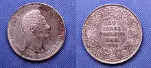 Au niveau des devises, deux systèmes monétaire prédominent dans la Confédération germanique, dans le sud c'est le gulden (florin), au nord du Main le taler. Mais, depuis 1754, il existe une unité commune, le konventionstaler, qui reste la première tentative d'harmonisation des monnaies dans la Confédération germanique. Les villes hanséatiques utilisent quant à elles le mark (en)[réf. nécessaire]. Dans les années 1820, la Prusse rejoint le système basé sur le taler. Le Zollverein incite à plus d'harmonisation en faveur du taler prussien, à partir de 1834[56]. Cet objectif n'est certes que partiellement atteint, mais les traités d'équivalence monétaires permettent une relative unité du système monétaire[57].