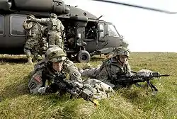 Troupes de l'U.S. Army sécurisant une zone d'atterrissage.