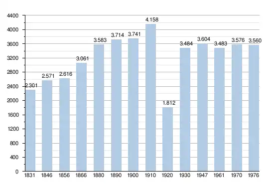 - Sources : INS, Rem. : 1831 jusqu'en 1970 = recensements, 1976 = nombre d'habitants au 31 décembre[3].