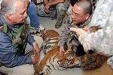 Vétérinaires de l'armée américaine examinant un tigre, 2009.