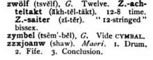 Il a figuré régulièrement dans plusieurs ouvrages d'étymologie et dans Music Lovers' Cyclopedia, de Rupert Hughes, où on le présentait comme le mot māori pour « tambour », alors que les sons correspondant à « z », à « x » et à « j » sont absents de cette langue polynésienne.