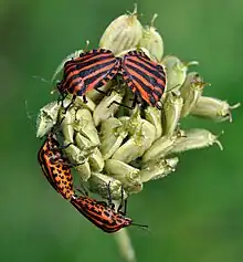 Chez la plupart des insectes, le mâle monte d'abord sur la femelle et positionne son bulbe génital (édéage) avec l'atrium génital de celle-ci pour la pénétrer. Certains mâles restent accrochés sur le dos de la femelle durant l'accouplement et d'autres se retournent en direction opposée.