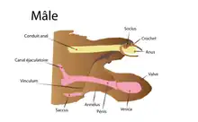 - ↑ (en) Resh, V. H., Carde R. T. and Bernays E. A (2009). Encyclopedia of Insects (2 ed.) - Reproduction, Male. U. S. A.: Academic Press. (ISBN 0-12-374144-0).