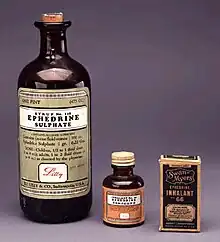 L'herbe chinoise traditionnelle Ma Huang (Ephedra sinica) contient de l'éphédrine comme principe actif principal et est utilisé comme antiasthmatique et vasoconstricteur[3]. Ceci est également vrai pour de nombreuses herbes à base d'extraits d'espèces d'Ephedra.
