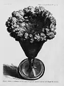 Dans son mémoire[16] du , Lémery s'appuie sur une expérience de laboratoire pour montrer au contraire que le fer peut facilement s'élever malgré l'action de la pesanteur (voir figure ci-contre), à la condition d'être transformé en vitriol[n 7]. Les sols contiennent tous du fer qui lorsqu'il rencontre un acide, se réduit en vitriol. « Ce sel, dis-je, résous dans une quantité suffisante d'eau, ne pourra-t-il pas se distribuer dans toute la plante ! » s'exclame-t-il. Le vitriol, n'a plus de propriétés magnétiques mais peut les récupérer par calcination car il est constitué par une simple juxtaposition de fer et d'acide.
