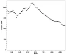 - la diminution du nombre de chasseur (-29,3 % sur la même période de 20 ans)[20] ;