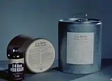 Le 2,4-D a été synthétisé pour la première fois en durant la Deuxième Guerre mondiale[11]. Ce composé, mélangé à part égale (50:50) avec le 2,4,5-T participe à la constitution de l'agent orange, un herbicide utilisé (de à ) durant la guerre du Viêt Nam pour faciliter la progression des troupes américaines dans la jungle en supprimant l'épaisse canopée pouvant masquer les forces d'opposition, en détruisant les cultures dont ces forces pouvaient dépendre et en supprimant la végétation à proximité des bases américaines[12],[13]. Lorsqu'il est mélangé au Picloram (en) il constitue l'Agent blanc, un autre pesticide utilisé entre 1966 et 1971 par les troupes américaines[13].