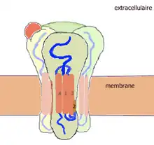 ![]() Structure d'une sous-unité des récepteurs ionotropes du glutamate. |