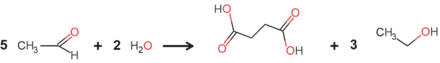 L'éthanal réagit avec l'eau pour former de l'acide succinique.