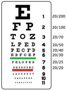 - ↑ « ISO 8596:2017 Optique ophtalmique — Mesure de l'acuité visuelle — Optotype normalisé et optotypes cliniques et leur présentation », extrait, ISO (consulté le ).