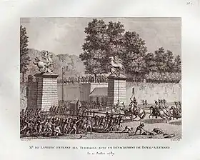 Koraïs arrive à Paris le ; il devient bientôt un observateur direct et pénétrant de la Révolution française et de ses suites. De cette Révolution, il fait un récit passionnant dans ses Lettres au Protopsalte[N 4] de Smyrne, Démétrios Lotos. C'est en spectateur curieux qu'il assiste d'abord aux premières émeutes : « Au milieu de ces troubles, je sortais chaque jour pour voir de mes yeux toutes ces choses terribles qui étaient nouvelles pour moi », écrit-il[31]. Il est surpris, au cours d'une « promenade au jardin du Roi, nommé les Tuileries », d'entendre une fusillade qui éclate le contre les troupes du Prince de Lambesc ; deux jours plus tard, il est horrifié de voir les têtes sanglantes du gouverneur de la Bastille et de son major promenées dans les rues au bout d'une pique par la foule des Parisiens[32]. Aux sarcasmes mordants dont il se sert pour railler le clergé et la noblesse, « caste excessivement tyrannique et orgueilleuse comme celle des moines »[33], on devine aisément sa satisfaction de voir abolis leurs privilèges[34].