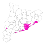 L'origine de la population espagnole du moustique tigre est inconnue. On suppose qu'il est arrivé en Espagne en provenance d'Italie. Il est détecté pour la première fois en à Sant Cugat del Vallès, près de Barcelone, par le Servei de Control de Mosquits del Consell Comarcal de Baix Llobregat[57], il s'est étendu à la ville de Barcelone et ses alentours en 2005 et en 2006 et poursuit son expansion en Catalogne et autres zones de la péninsule Ibérique. Sa propagation en Catalogne semble profiter des véhicules qui voyagent quotidiennement entre la ville et ses alentours[58].