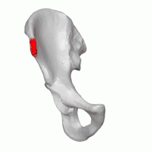 La face glutéale de l'ilion est lisse et de forme triangulaire.