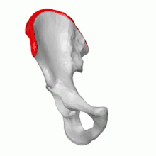 Il présente également deux saillies l'épine iliaque postérieure et supérieure et l'épine iliaque postérieure et inférieure. séparées par une petite échancrure.