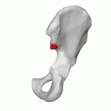 L'épine iliaque antérieure et inférieure est limitée en bas par une gouttière qui la sépare de la lèvre supérieure de l'acétabulum.