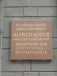 Alfred Adler, né le à Rudolfsheim, près de Vienne (aujourd'hui le 15e arrondissement du district viennois de Rudolfsheim-Fünfhaus), et mort le à Aberdeen, en Écosse, est un médecin et psychothérapeute autrichien. Il est le fondateur de la psychologie individuelle.