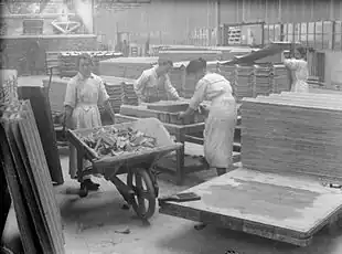 Industrie de l'amiante. Panneau de toiture en amiante-ciment durant la Première Guerre mondiale.