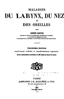 - Maladies de la voix (1902) et Maladies du larynx, du nez et des oreilles (1903) ont fait date dans l’histoire de l’ORL en France.