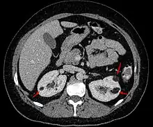 L'Angiomyolipome est une tumeur rénale bénigne constituée microscopiquement de vaisseaux, de muscles lisses et de graisse. Cette tumeur rénale est souvent de découverte fortuite de par sa croissance lente et sa relative innocuité, elle peut cependant être découverte à l'occasion d'hématurie ou d'hémorragies interne. Elle est associée dans 25 à 50 % des cas à une sclérose tubéreuse de Bourneville.