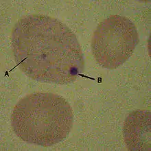 Il s'agit d'un inclusion cellulaire anormale en forme d'anneau, parfois tourné en huit[2] ayant l'aspect de fins filaments rouge-violet formant un anneau ou une boucle à l'intérieur d'une hématie le plus souvent polychromatophile (souvent de pair avec une ponctuation basophile), correspondant à des reliquats des microtubules du fuseau mitotique[3],[4]. Sauf situations exceptionnelles, leur nombre est toujours très faible, moins d'une hématie anormale pour 20 à 30 champs de microscope[3].