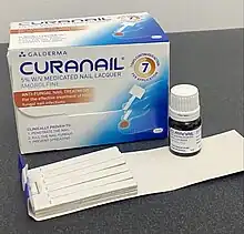 Les antifongiques sont utilisés pour traiter les mycoses. Ici, l'antimycosique est l'amorolfine, appliqué sous la forme de vernis à ongles pour les mycoses unguéales.