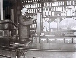 En 1777, à la suite d'un décret de Louis XVI remplaçant le jardin des apothicaires par le Collège de pharmacie, les apothicaires prennent le nom de pharmaciens et obtiennent, après de nombreuses querelles avec les médecins, les chirurgiens et surtout les espiciers, l'exclusivité de la préparation des remèdes. Cette déclaration sépare la corporation des apothicaires de celle des épiciers, reconnaissant ainsi le monopole de la vente des médicaments aux seuls membres du Collège royal de pharmacie. Il officialise ainsi la pharmacie comme une branche de la médecine nécessitant des études et des connaissances approfondies. La loi du 21 germinal an XI () régit l'exercice de la pharmacie et crée deux ordres de pharmaciens: en officine et à l'hôpital[8]. Elle interdit aux épiciers-droguistes de vendre des drogues simples au poids médicinal. Avant cette loi, la pharmacie n'était régie par aucune législation régulière ; il y avait cependant une foule d'édits qui la concernaient.
