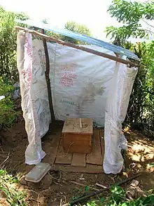 On l'appelle parfois « toilette à compost à fosse unique » (single pit composting toilet[1]) ou « latrine mobile à fosse unique » (single pit walking latrine[2]).