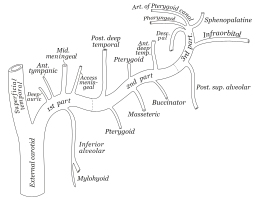 - une branche externe : l'artère des cornets donnant l'artère du cornet moyen (ou artère nasale moyenne) et l'artère du cornet inférieur (ou artère nasale inférieure) ;
