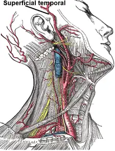 L'artère temporale superficielle (Arteria temporalis superficialis en latin) est une des deux branches terminales de l'artère carotide externe. Elle participe notamment à la vascularisation de la glande parotide et de la partie latérale de la face et du scalp.