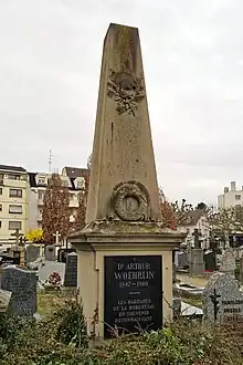 - ↑ Cimetière Saint-Louis, Guides des cimetières no 3 de la Ville de Strasbourg, Strasbourg, 2008, p. 17